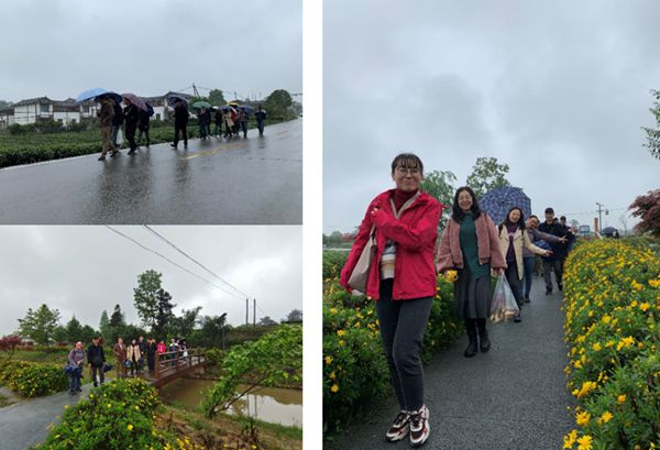 通过参观和游览明月村,增加了老师们对新农村建设的认识,感受了春天里万物生长的愉悦,徒步三小时让老师们身心得到了放松,沿途的茶园、竹林和猕猴桃果园里生机勃勃,看到了新农村的生产力,体会了国家和社会进步蒸蒸日上的发展势头。