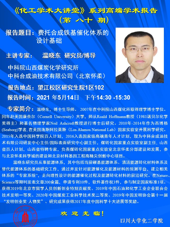 “化工学术大讲堂”系列高端学术报告(第八十期)