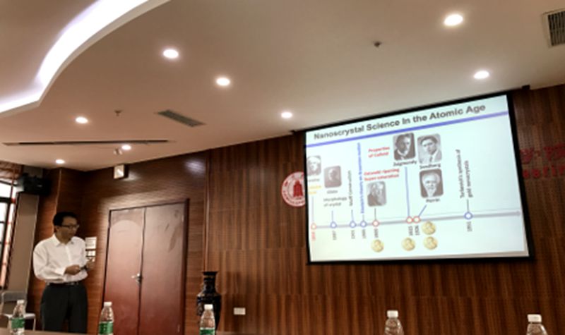 在本讲座中,曹教授首先就纳米晶体科学的发展过程娓娓道来,从最早的胶体金到量子点再到纳米线及金属纳米颗粒的逐步发展,跟我们细数了纳米晶体发展过程中的各位诺贝尔得主的发现。然后曹教授向我们重点介绍了他重点关注的有机配体在纳米粒子自组装控制和人工细胞机械制造中的科学,首先讨论具有超晶体结构的超粒子的形成,在形状和结构各向异性的调节下,纳米球、纳米棒和纳米管的自组装可以产生具有单个或多个定义良好的超晶领域的介观胶体超粒子,该种超粒子是创造新型功能材料的重要构件。其次,在报告中曹教授还阐述了一类新的纳米粒子细胞内机器-纳米酶,它可以有效地模拟RNA诱导复合物的沉默功能,可用做功能基因组学的强大工具,以及用于对抗蛋白质表达相关疾病,如病毒感染和癌症。
