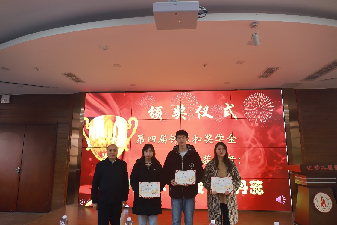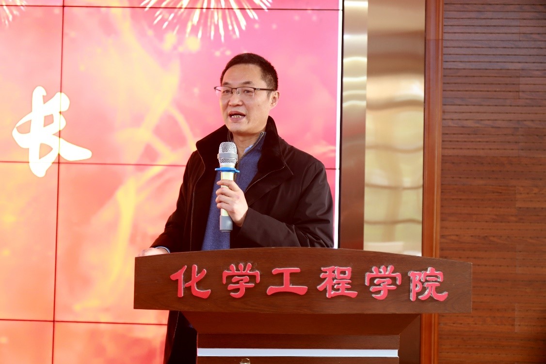 院长赵长生教授致辞。他介绍了钟本和教授及团队6位教授在2018年学校122年校庆之际捐资122万元设立奖学金的初衷,向关心支持学校化工学科发展的老一辈磷化工科学家表示衷心的感谢和崇高的敬意,并希望此次受表彰的学生能够传承弘扬老一辈磷化工专家面向国家需求、攻坚克难的科学家精神,继续在科研道路上发光发热,作出自己的贡献。