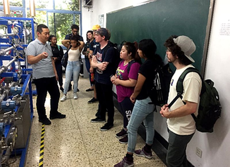 在参观过程中,中心老师向他们详细介绍了各种设备的设计原理及应用方向。期间,同学们热情不减,不时交流提问,分享国外高校化工设备的情况。耐心而专业的讲解获得了同学们的一致好评,也让密歇根大学的学生对四川大学实验设备情况、化工学科的科研环境有了深入地了解。不少同学对四川大学的研究生阶段的学习表现出了浓厚的兴趣。