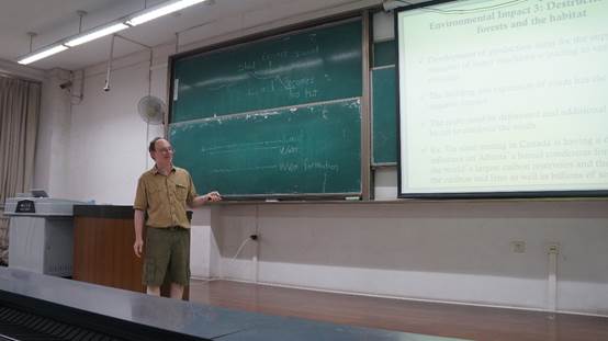 询问Parnas教授关于此次国际课程周的选题缘由。Parnas教授说:化石能源的可持续发展对地球上的每一个人来说都特别重要,化石燃料的燃烧利用过程引起了全球变暖,我们必须去了解全球的能源工业,了解能源工业如何使用化石燃料,以及了解可再生能源技术,如此我们才能明白开发化石燃料替代品的紧迫性。希望到我课堂的中国学生们,可以有所收获,中国在拯救地球的环境问题上扮演着非常重要和关键的作用,盼望更多的中国人参与到环境保护中来。