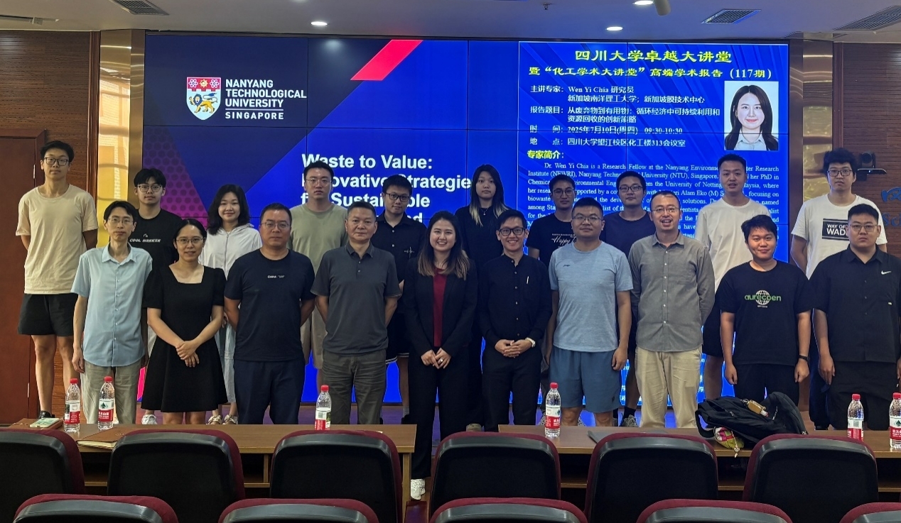 通过此次高端学术报告,促进了四川大学和新加坡南洋理工大学在面向两国可持续发展和循环经济建设需求方面的技术和人员交流,为进一步开展联合项目申报和研究提供了沟通的平台和打下了坚实的基础。
