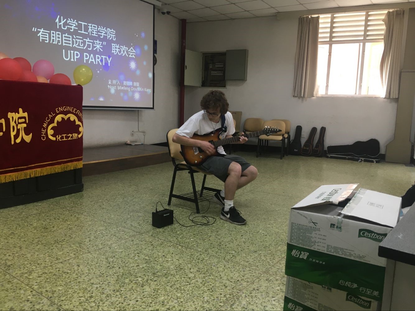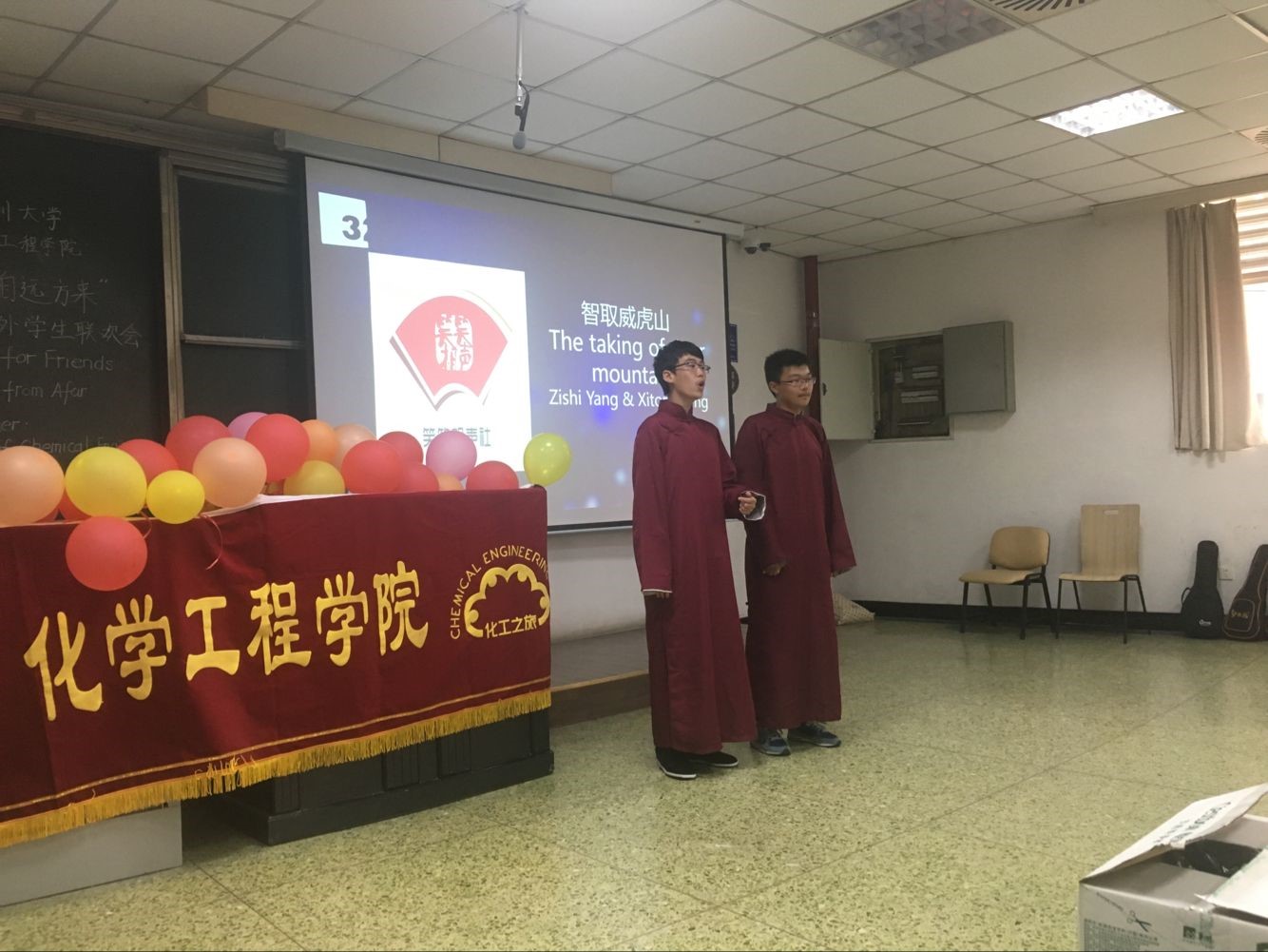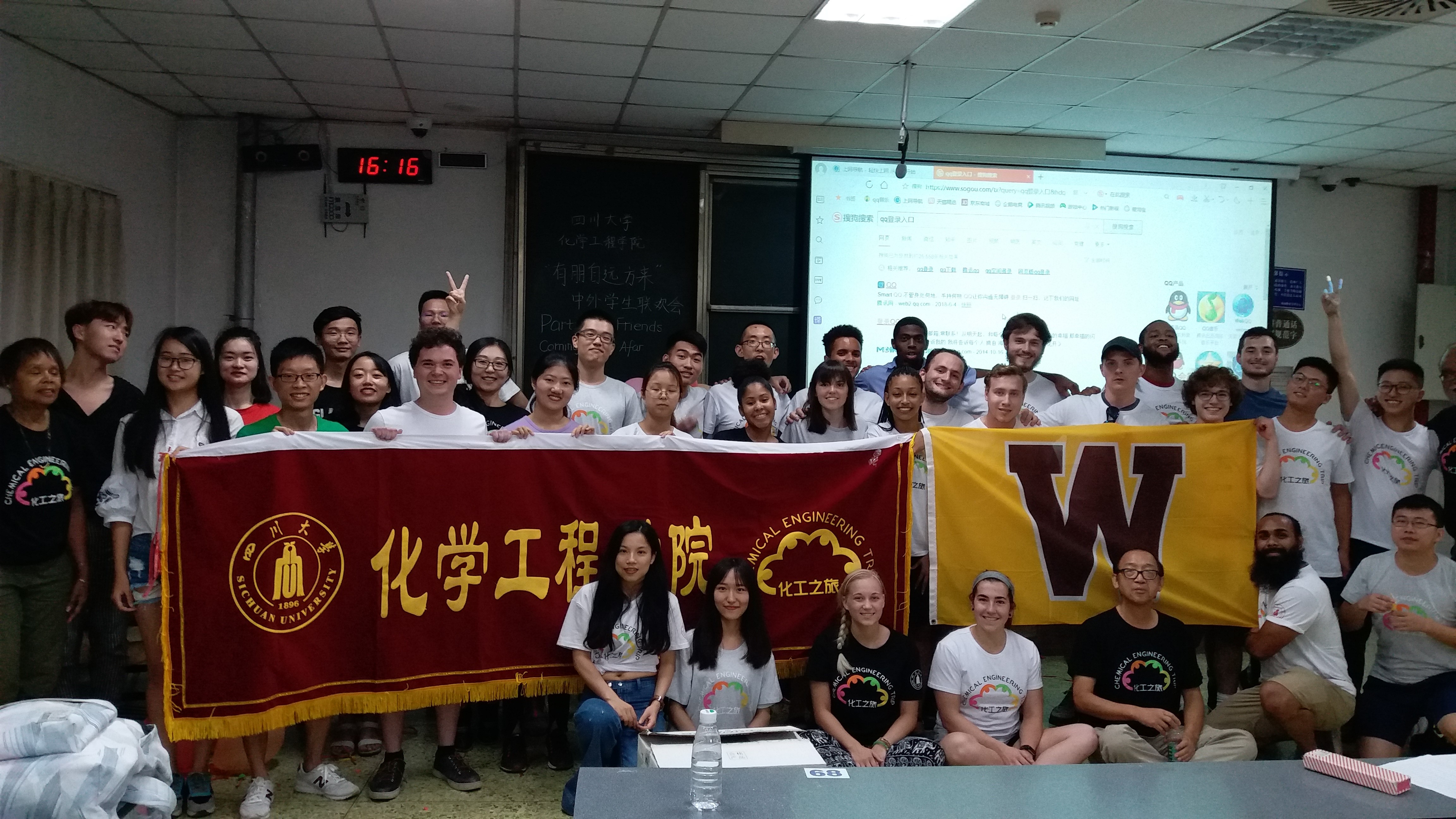在望江校区基础教学楼C座103举办了“化工之旅2018”国际交流营中外学生联欢会。
