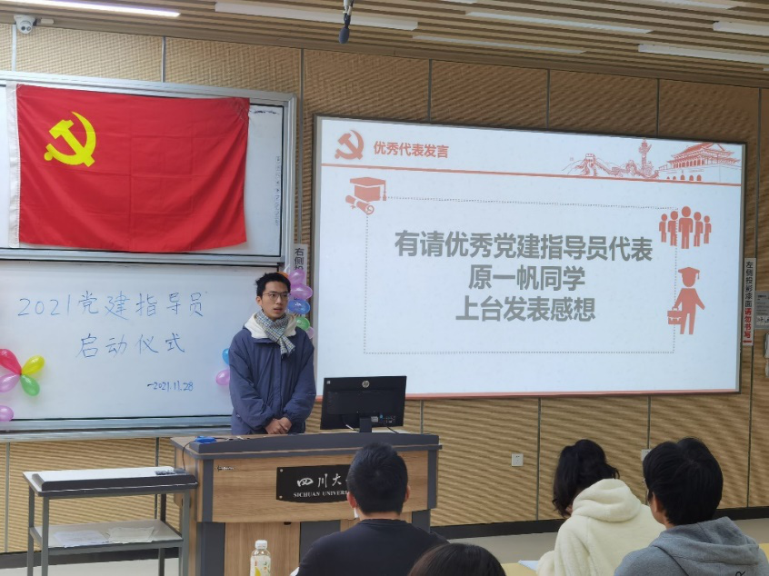 党建指导员活动是一项传播党的思想,加强党的基础建设,发扬优秀党员服务精神的活动。四川大学化学工程学院遴选了一批在读研究生党员担任2021级本科班级的党建指导员,在任期内每月定期组织开展党建指导活动,指导学生学习党的历史文化,提高学生对党的认知,注重在学生群众中培养和发展党员。正如习近平总书记说“当代中国青年是与新时代同向同行、共同前进的一代,广大青年应肩负历史使命,坚定前进信心,立大志、明大德、成大才、担大任,努力成为堪当民族复兴重任的时代新人。”党建指导员将为党培养更多优秀青年学子,并辅导2021级学生健康成长,明确目标,充实地度过大学时光。