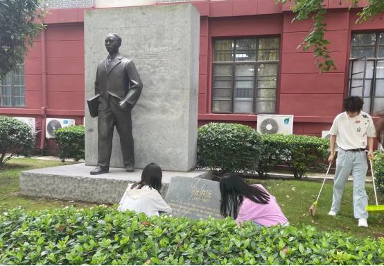 公共卫生区域,研究生一同清洗了张洪沅先生铜像,打扫了8bo足球即时比分