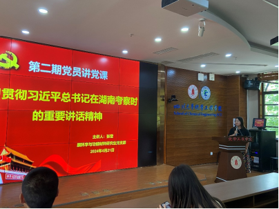 研究生膜科学与功能材料党支部于2024年4月28日在望江校区化工楼313会议室开展了第二期“党员讲党课”专题活动,学习领会习近平总书记在湖南考察时的重要讲话精神。