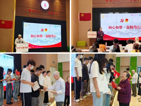 共青团工作先进集体和个人获奖名单,并邀请两位老教师为获奖代表颁发荣誉证书。