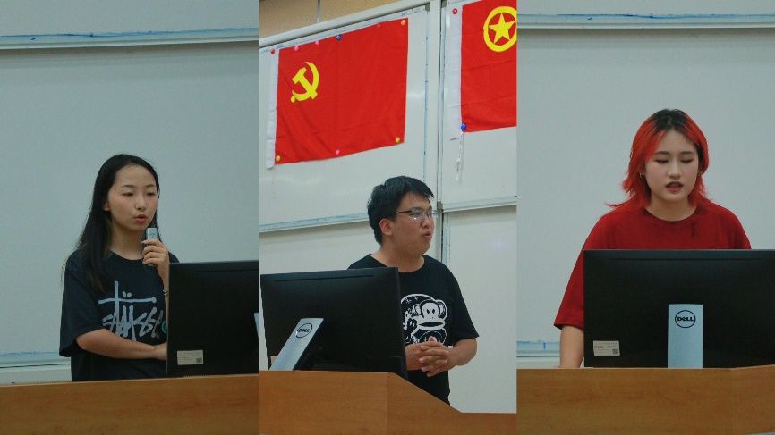 图为贾真、万彦卓和陈星伊作留学经验分享