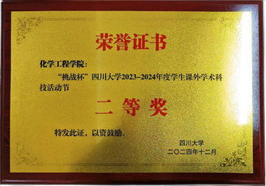 “挑战杯”四川大学2023-2024年度学生课外学术科技活动节获奖证书