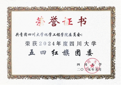 团委荣获“四川大学五四红旗团委”,2024级先进化工与高端装备类专业109班团支部等6个支部荣获“四川大学五四红旗团支部”,李珍珍荣获“四川大学共青团工作标兵个人”,陈渝荣获“四川大学青年五四奖章”,李梓睿等12人荣获“四川大学优秀共青团干部”,刘柯辛等20人荣获“四川大学优秀共青团员”。