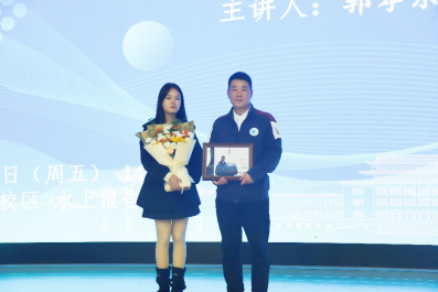 最后,学生代表向郭孝东教授献花并赠送纪念相框,本次锦水论坛“低碳与新能源化工进展”讲座圆满结束。