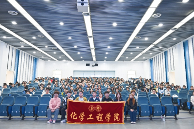的近400名学生进行授课和交流互动。围绕党的二十大报告擘画的蓝图,郭孝东教授深入浅出地讲解了化工学科服务“双碳”与新能源战略的现实路径,帮助同学们理解了自身专业在时代发展中的巨大机遇。