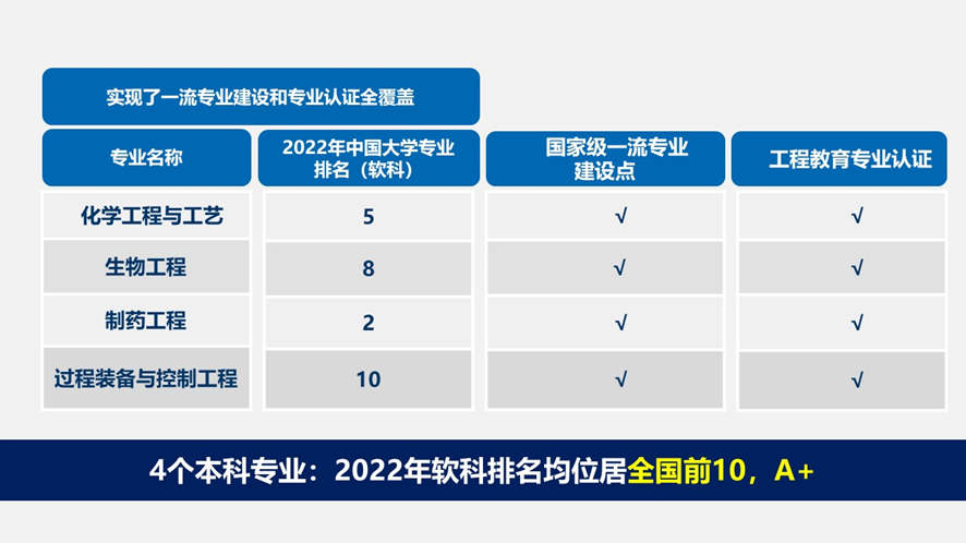 现有国家重点学科“化学工程”,承担学校“化学与绿色化工”一流学科(群)和超前部署学科“绿色磷化工前沿技术”建设任务。有“化学工程与技术”和“动力工程及工程热物理”等2个一级学科博士学位授权点。“化学工程与技术”教育部第四轮学科评估为A-,处于全国前5-10%,2022年软科世界一流学科排名全球第9位。有化学工程与工艺、制药工程、生物工程、过程装备与控制工程4个本科专业,均为国家级一流本科专业建设点。在全国率先建设“互联化工”交叉试验班并在2020年实现招生。8bo足球即时比分