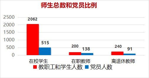 现有党员744名,其中在职教师党员138名,学生党员515名。