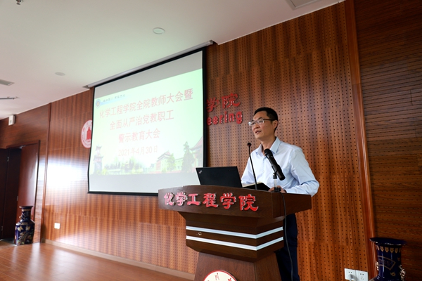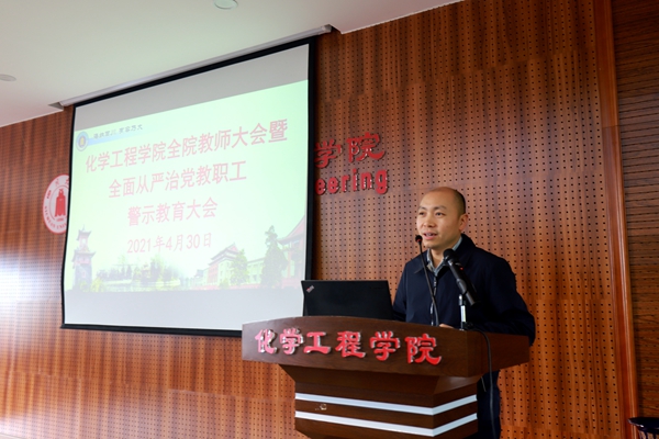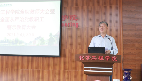 全体教职员工能够以习近平新时代中国特色社会主义思想为指导,牢记高校立德树人使命,将党史学习教育与一流化工学科建设相结合、与一流化工创新人才培养相结合、与一流科技成果产出相结合,划定高校教师行为的红线和底线,强化对权力运行的制约和监督,为坚决打赢疫情防控阻击战,奋力推进中国特色、川大风格的世界一流大学建设和一流化工学科建设提供坚强保障。