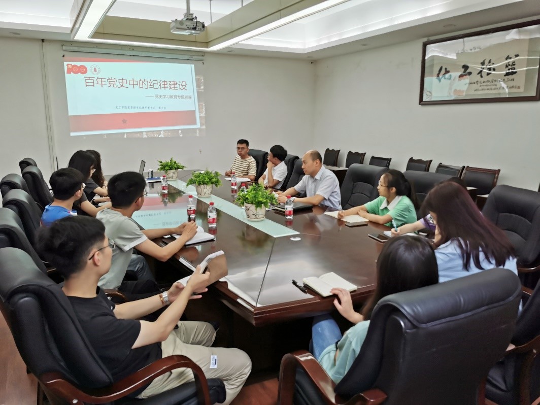 李天友副书记从“建党初期党的纪律建设、苦难中艰难探索与发展、建国初期党的纪律建设和开启全面从严治党新的伟大征程”四个方面,对百年党史中党的纪律建设进行了系统的回顾和讲解。