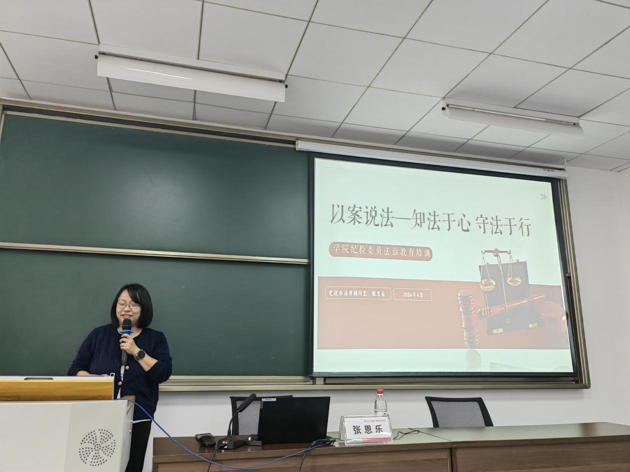 校法律顾问室主任张恩乐以《以案说法——知法于心,守法于行》为题进行报告,从身边的真实案例入手,结合新修订的《事业单位工作人员处分规定》等法律法规和规范性文件,深刻剖析违纪失范典型案例,对学校教师教学科研活动、行政管理和日常生活中常见的涉法风险问题的进行了详细解读,以案说德、以案说纪、以案说法、以案说责,让学员们受警醒、明底线、知敬畏