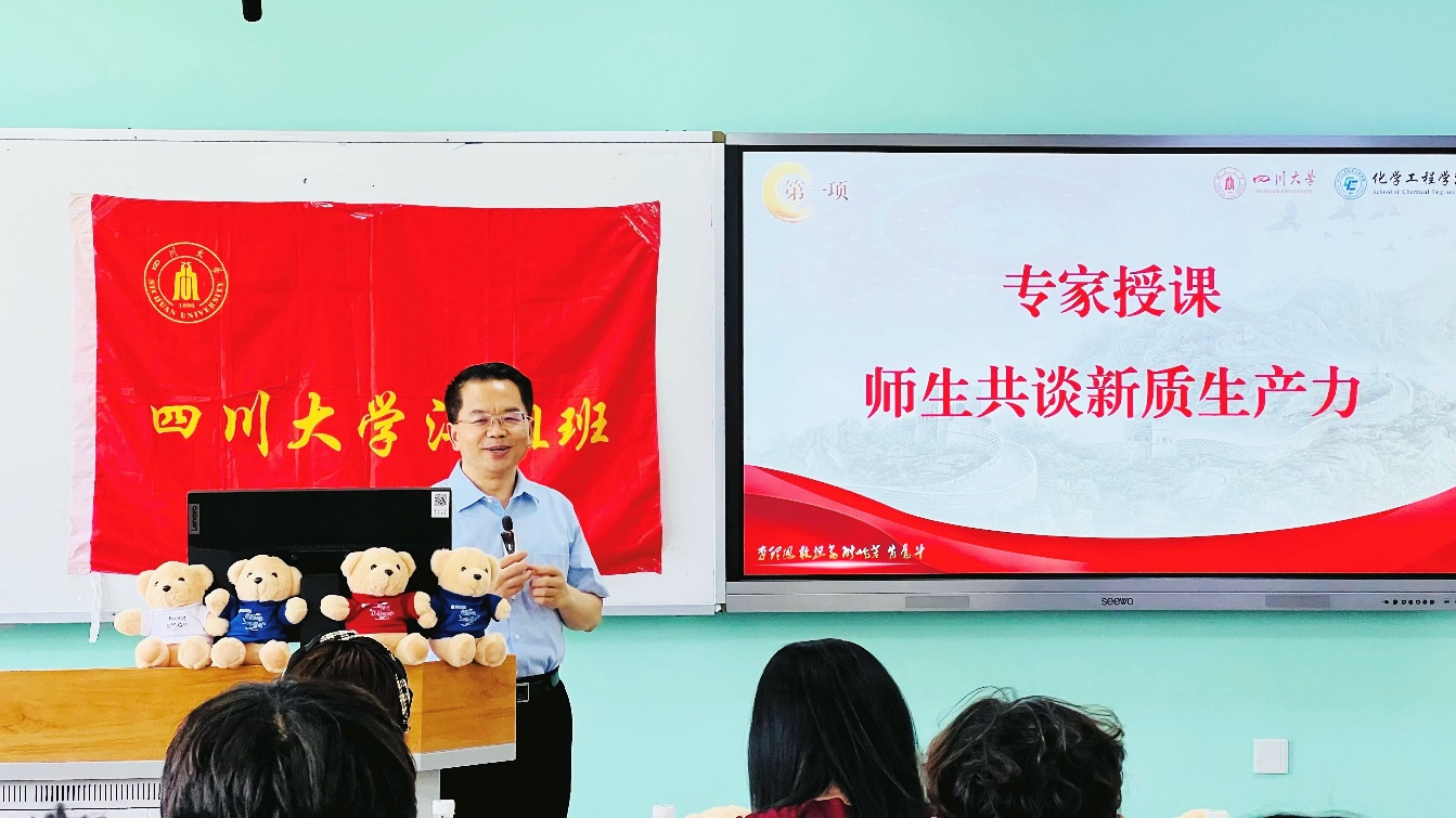 褚良银老师从“新质生产力”一词的起源、内涵和特征出发,谈了他对新质生产力的认识和理解,提到发展新质生产力、培育新兴产业、布局未来产业是中国变得更加强大必须要走的路径。高水平研究性大学需要勇担重任,在形成、发展和壮大新质生产力方面做出真贡献。我们川大的“江姐班”和“卓工班”等人才培养模式创新、学科优化布局以及加强有组织科研,正是适应高质量发展的步伐所做的多方面努力。他寄语大家,在校期间要努力学习创新知识、提升创新素质和创新能力,为今后在工作中为发展新质生产力做贡献打好坚实基础。