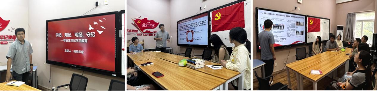 习近平总书记曾强调:“纪律是管党治党的‘戒尺’,也是党员、干部约束自身行为的标准和遵循。”希望通过党纪学习教育,毕业生党员们能涵养自身学纪、知纪、明纪、守纪的清风正气,在新征程中坚持做到明底线、知敬畏、尽职责、遵纪律。