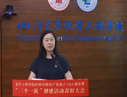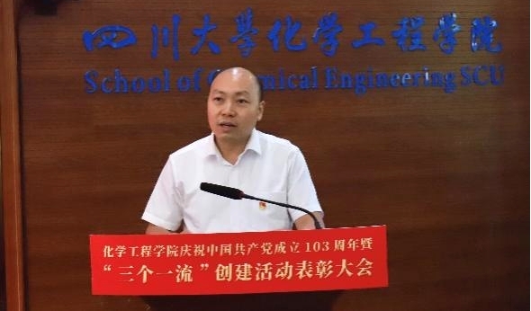 庆祝中国共产党成立103周年暨“三个一流”创建活动表彰大会于望江校区正行楼313报告厅隆重举行。四川大学杰出教授钟本和、院党委书记李天友、党委副书记姜利寒、副院长唐盛伟、副院长谢锐、工会主席穆畅道、专职组织员陈晓东及全体教职工党员、学生党员代表等共计180余人参加此次表彰会。院党委副书记兼纪委书记李德富主持会议。