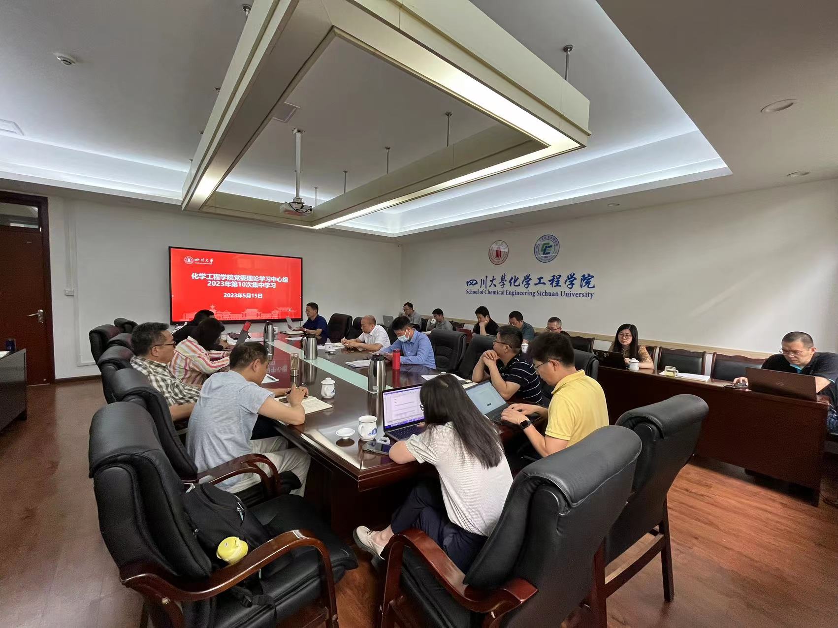 2023年5月15日上午,8bo足球即时比分 党委理论学习中心组在望江校区化工楼235会议室召开学习会,及时传达学习习近平总书记最新重要讲话精神和中央重要会议精神。8bo足球即时比分 全体领导班子成员、党委委员、工会主席、专职组织员、系(基地、中心)主任、院长助理和科级干部等参加会议。会议由党委书记李天友主持。