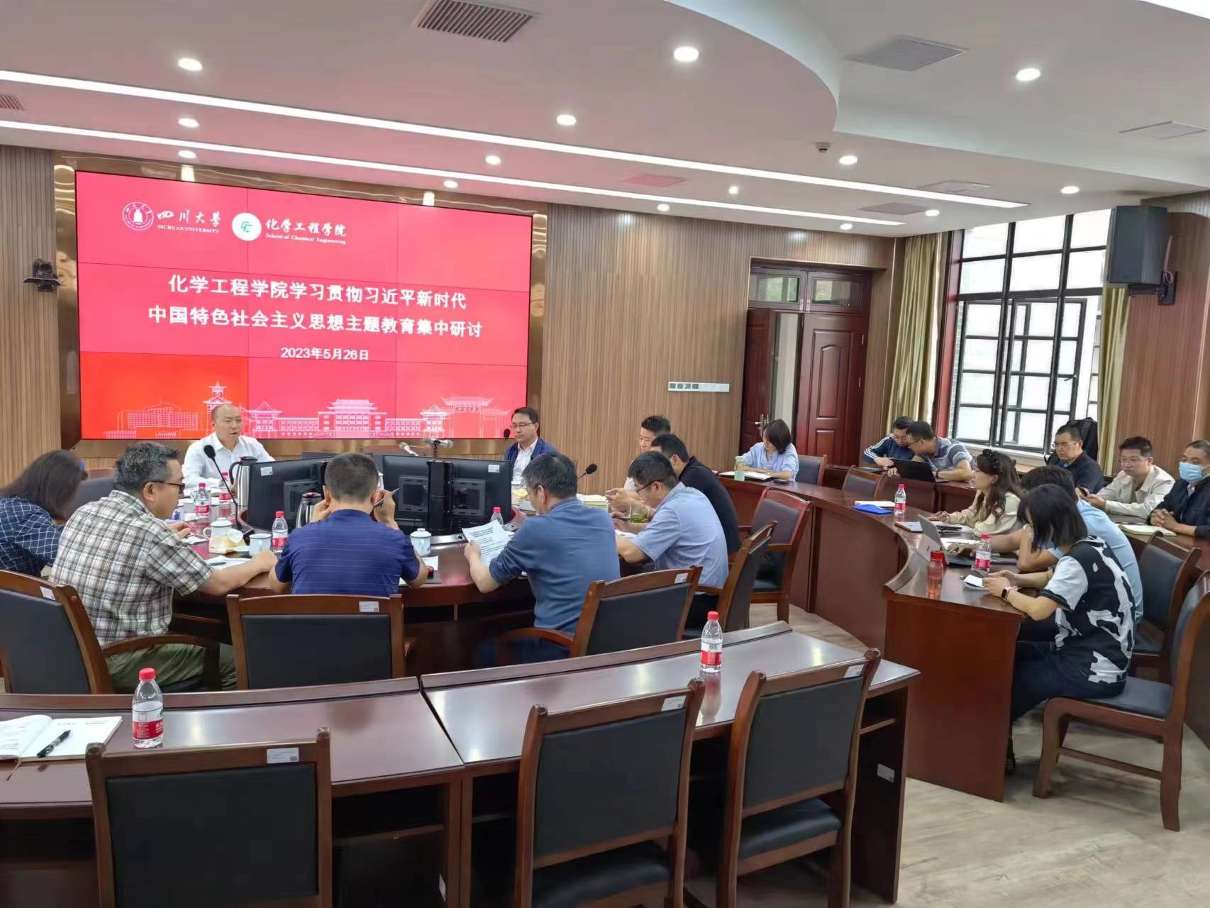 5月26日上午,8bo足球即时比分 学习贯彻习近平新时代中国特色社会主义思想主题教育读书班集中研讨会议在望江校区化工楼312会议室举行,会议研讨主题为“学习贯彻习近平新时代中国特色社会主义思想,全面加快推进8bo足球即时比分 高质量发展”。学校主题教育第六指导组联络员、学校科研院综合办主任陈曦到会指导。会议由8bo足球即时比分 党委书记李天友主持,8bo足球即时比分 全体领导班子成员、专职组织员、工会主席、教授委员会正副主任、系级单位主任、教工党支部书记、院长助理、全体科级干部和部分教师代表等参加。