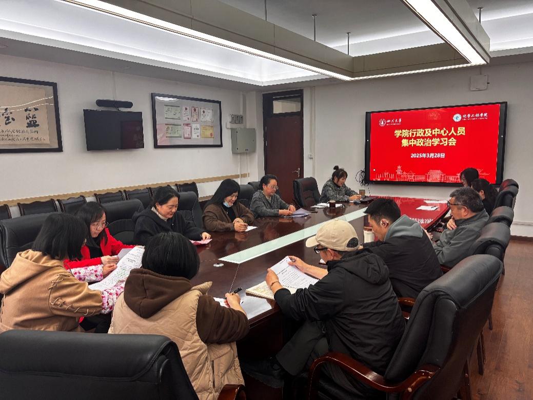 有关会议精神,并带领大家集体学习了中央八项规定实施细则的具体内容。李涛开展了保密教育,并领学了中共中央总书记、国家主席、中央军委主席习近平于3月6日下午看望参加全国政协十四届三次会议的民盟、民进、教育界委员时发表的重要讲话内容。李晓燕、毛静及付兵领学了全国政协十四届三次会议及十四届全国人大三次会议开幕相关新闻,传达了全国“两会”精神。杨谨瑗领学了中央八项规定的具体内容。